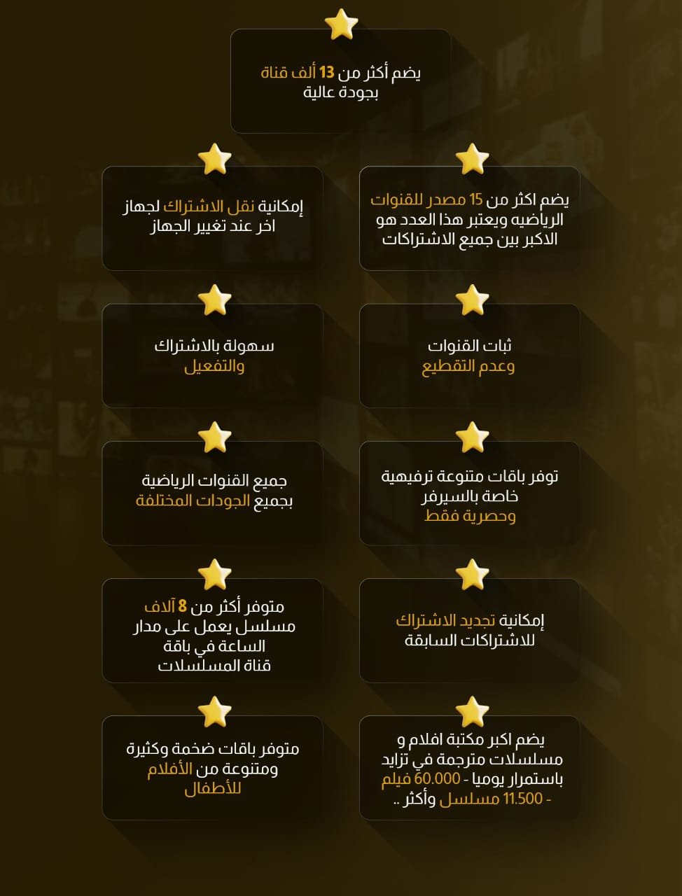 أفضل سيرفر للبث المباشر والافلام والمسلسلات بدقة عالية وأصلية، أكثر من 25 الف قناة بعدة جودات اكثر من 5 مصادر لبث القنوات، مكتبة ضخمة بها أكثر من 89 الف فيلم بعدة ترجمات وعدة لغات، واكثر من 18 الف مسلسل بعدة ترجمات.